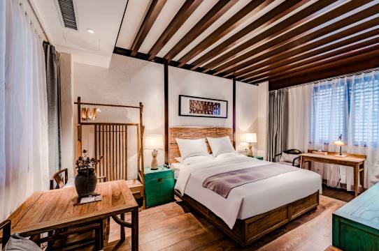 这是住过最好的民宿,砖青瓦黛的三层建筑,五脊六兽的瓴角屋顶,层层叠叠的内外院落,花木掩映中的雕花木窗,摆着钧瓷与书籍的酒店大堂,一走进来就能感受到古朴而又温馨的气息。房间里设施完备,木地板,新中式,搭配精致的明代风格家具陈设,简洁的装修与轻奢的家居完美融合;卫生间虽然不大,却做到了干湿分离,中央空调凉爽了夏日夜晚。小姐姐笑脸相迎,热情有礼!早餐简单搭配合理!下次还会来。