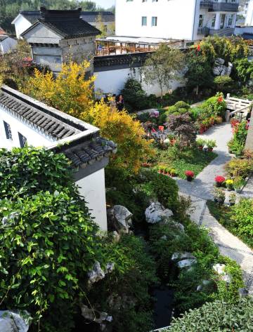进门是很漂亮的庭院 有许多鲜花 还有个小鱼池 很舒服的地方