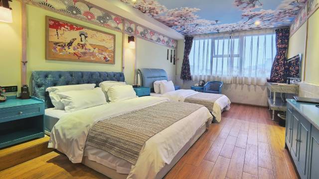 房间是主题房,很喜欢这种风格,也算是比较简约,空调很凉快,房间也非常大,和朋友过来附近玩定的酒店,很惊喜!