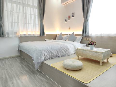 设施:房间设施都很齐全。而且放置的位置也非常的细节,就比如香皂有个小托盘托着,可以看出老板娘是一个非常细节控的人。床刚好正对着电视,开关也刚好在床头,床头柜还摆放着一小盆雏菊,色调给人心情很好