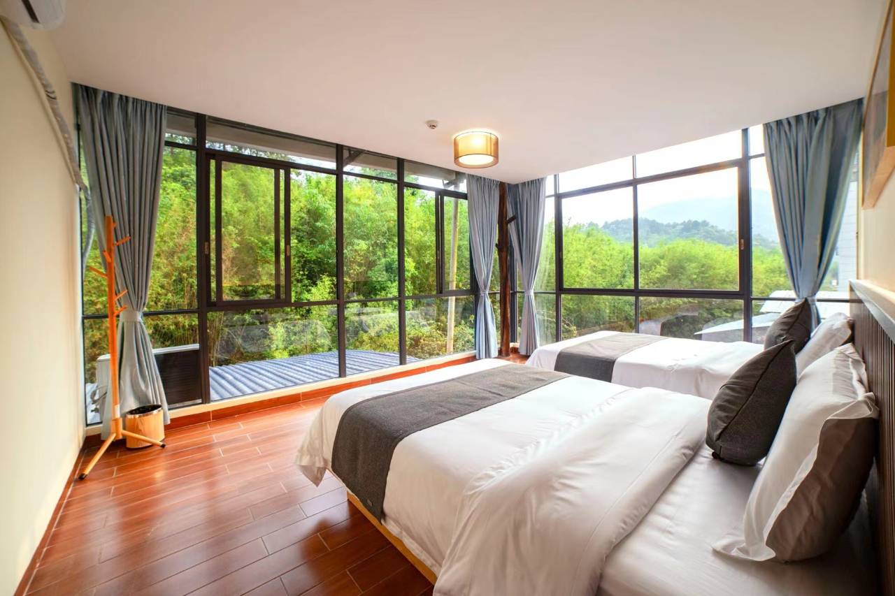 古龙驿站依山傍水、环境优美、天然氧吧、空气清新!畅游山泉泳池!280度玻璃房、套房、落地玻璃窗,窗外是幽幽的溪水和翠绿的竹林,早上在山鸟的晨鸣中转醒,感受那一抹温暖的阳光!