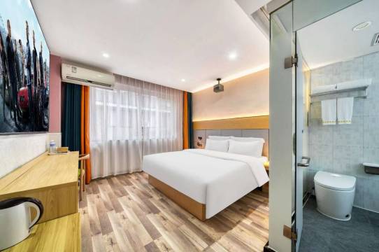 临时订的酒店,很合心意。房间干净整洁,地理位置优越近大学城。服务很有耐心,周边生活配套设施齐全。下次出差还会选择这里!