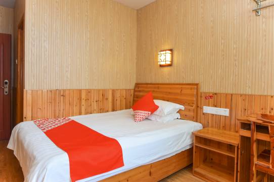 前厅宽敞明亮,头顶的水晶灯高贵而优雅;室内有两种装修风格:一种采用了古朴整洁的木色墙壁和家具,显露出自然的木材纹理,处处散发着大自然的气息,有种返璞归真的韵味,满足了宾客对大自然的向往;另一种则是简单线条结构,明朗的线条让人倍感舒适,碎花墙纸增添了一种俏皮可爱的感觉,整体看上去清新淡雅。除此之外,房间通风采光效果良好,热水、洗漱用品等设备齐全,是您理想的下榻之处。锦尚缘宾馆将热情如一地服务每一个住客,欢迎您的到来。