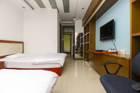 住了14天,非常的舒服。标间空间挺大的,老板人也好。旅馆的位置非常不错,去哪儿都方便。早饭下楼在学校门口儿吃就行。
