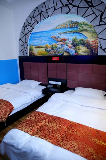 本店地理位置优越距离火车站1000米,长途汽车站1500米 建设路与利民东街交叉口一百米 是市中心繁华地段大厦 金川商场蓝宇大厦河港商场富源商场 步行5分钟 距离河套大学俩百米附二中52米周围学校五个蒙古小学 河大附中 蒙古中学高中 夜市 楼下万客乐连锁超市 周边小吃各类小吃店应有尽有 本酒店是一家巴市一家以情侣网络电影商务为一体的大型主题酒店 新装修设施全套 设计风格独特朝气蓬勃 适合旅行度假商务接待