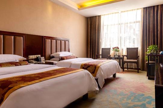 酒店客房设有多种不同房型,以满足客人之不同需求.客房装修豪华典雅,温馨舒适。内设中央空调、商务电脑、液晶电视等娱乐休闲设施一应惧全.同时各房间均有名家字画作装点,使您和朋友在本酒店享受到家人般的关怀,更能感受到中国文化的高雅精深.....中西餐厅环境优雅、浪漫,是您会客、商洽的理想场所.