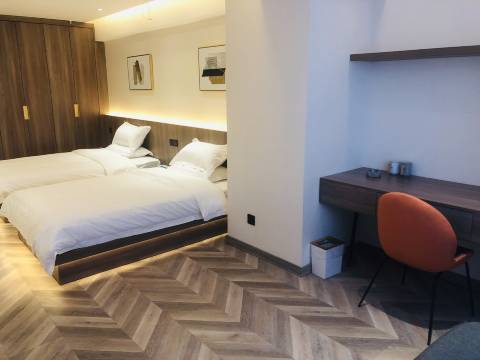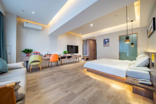 老板人贼好。免费帮忙升级了房型,去的太晚,入住也挺方便的,管理卫生干净整洁,服务周到,设施齐全,套房真的爽,