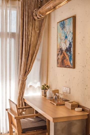 店如其名,就在深山中,看贡嘎雪山真是一绝。上去的路有一点点考验车技,但慢慢开,小轿车也是没问题的。周边风景如画,店家很用心经营,房间设施齐全,用的都是品牌货。在店里拍照哪哪都出片。拍累了,再泡个温泉,喝杯清茶,很是惬意。非常幸运看到神山的真容,如果有时间真想多住几天