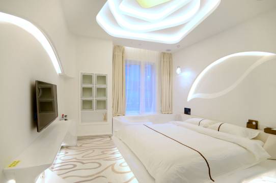 酒店拥有造型各异的特色主题房间,窗帘、灯光、音响系统采用智能控制面板,一键控制,让您不用下床就可以开关窗帘,随心所欲变换房间场景颜色。冬季采用地暖取暖,夏季采用中央空调。无论严寒酷暑,给您舒适的享受。房内提供进免费口咖啡、女士面膜、饮用水、洗衣液、护发素、润肤露,大厅有免费零食、水果,给您高品质的生活享受。