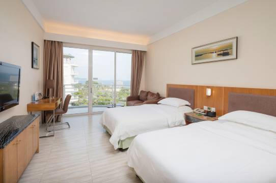 拥有多间海景客房,房间透过落地玻璃窗和贝壳式阳台,海天一色的美景近在咫尺。