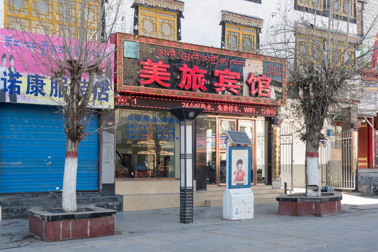 美旅宾馆位于日喀则步行街5号,交通便利。座拥扎寺..宗山,(距扎寺走5分钟,宗山15分钟)顶楼上好观景平台。