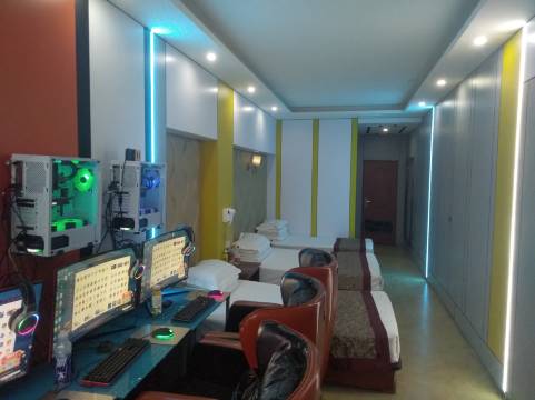酒店房间很大,可能是因为最近的人太多了,老板给我免费升级成了5人间的电竞房,一个人玩五台电脑,太强了