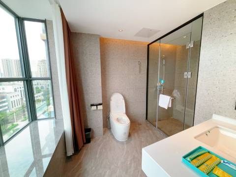 没有想到无意间订到性价比这么高的酒店让我迫不及待想来评价分享👍。房间空间足够,有很干净漂亮的飘窗看风景;现代化的各种设施,淋浴水很好;干净柔软的布品床单;从踏入酒店开始,前台可爱礼貌的姑娘们到早餐厅温和有礼的工作人员大姐👍;酒店12楼早餐厅一定要去,有雨的清晨喝咖啡看雨看风景,惬意而又养眼👍
