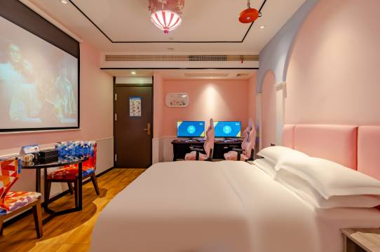 房间很大,而且配电竞电脑,电脑配置也很高,还有五人间,打打游戏逛逛夫子庙非常爽。夫子庙里面非常吵,没想到酒店里非常安静,隔音做的非常好。而且交通方便,夫子庙地铁站出来步行几百米就到了。