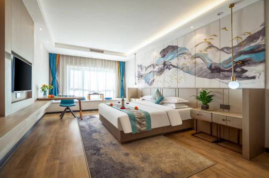 前台服务热情,给免费升级了豪华大床房,有飘窗,外面视野开阔,酒店设施设备齐全,房间干净,又大,适合家庭出游,性价比超高。
