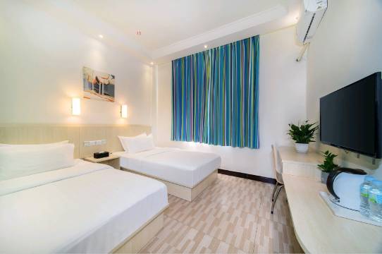 房间大小合适,卫生干净,地理位置在市中心,方便出行,前台服务态度很热情!