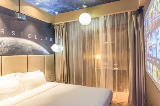孩子喜欢这样能看电影的房间,就像在电影院的感觉,让我继续这个住,因为有事儿,不得不离开,以后有机会的在继续住。免费给升级了有窗户的房间,主要是态度好。