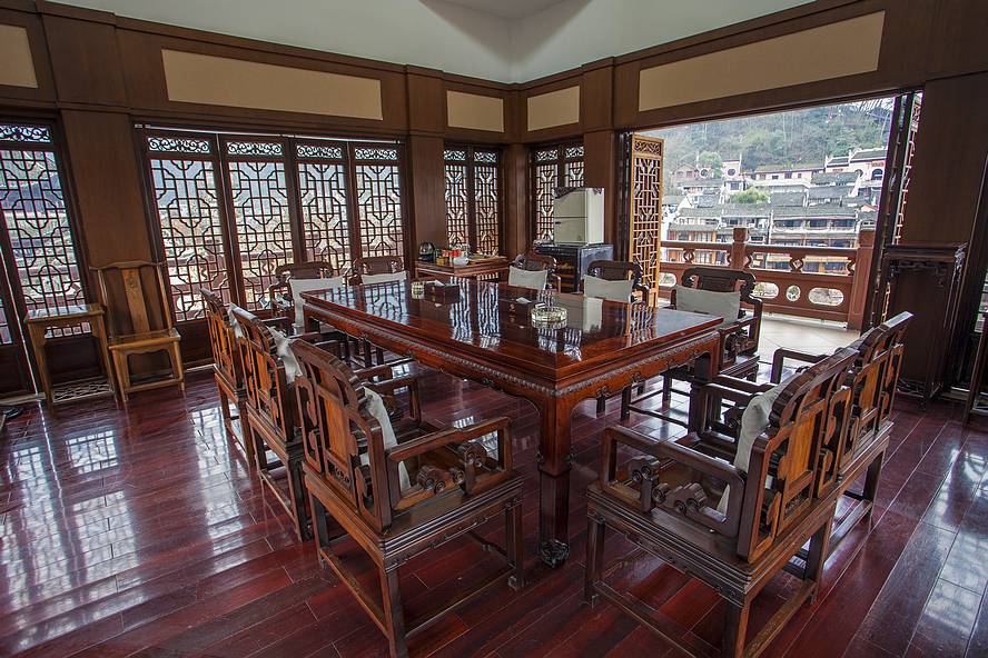 客栈集餐饮娱乐、休闲度假、会议商务于一体,由客房、茶楼、餐厅、组成。能容纳20多人的会议餐饮多功能厅1个,其中客栈内茶楼是会馆所独创;在会馆茶楼品茶沱江江景尽收眼底,古色古香的装修氛围使人仿佛陶醉在古时的湖光山色中。