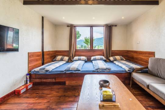 每幢内含大厅,厨房(柴火灶,煤气灶等),茶室,棋牌室,浴室,卫生间,2间卧室(卧室为大通铺,每个房间可睡4名宾客),单独院子。适合单户,多户家庭出游居住。基地内含有户外活动组织,攀岩,皮划艇,足球场等设施,需另外收取适当费用。民宿附近有杨梅,樱桃等采摘基地。