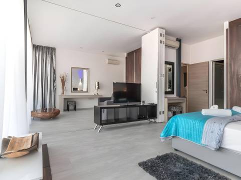 这是一个很棒的度假胜地,床单干净又香。电视下面的桌子太旧了,有很多裂缝和凹痕。我们这里有一台智能电视,可以看YouTube,所以你不会觉得无聊。