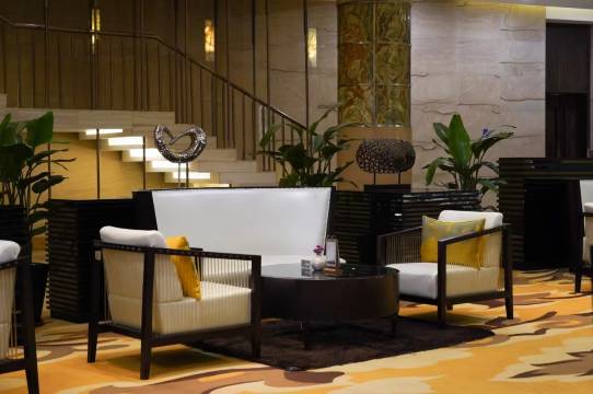 这个酒店有十多年历史了,建筑和装修都是真材实料,所以隔音效果很好。大堂宽敞气派,一共有六部电梯可以使用。
