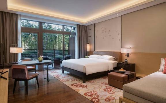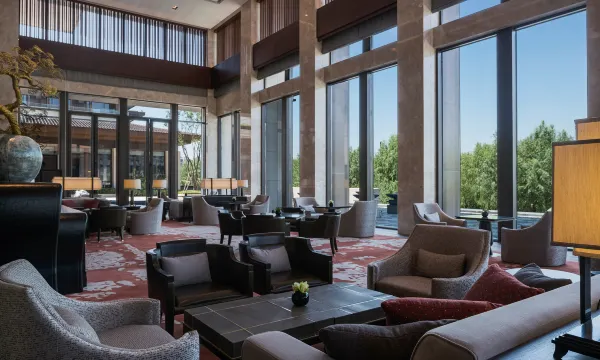 酒店坐落在美丽的曲江南湖遗址公园及被绿茵与湖水环绕,享受绿色空间,园林式的酒店体验让您尽享格调空间,房间的观景阳台能看到美丽的湖景。著名的曲江池遗址公园近在咫尺,来到酒店大堂酒廊波斯区域,穿过落地玻璃门,顺着石亭边的小路推开门便可直通曲江池遗址公园。