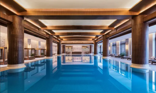 酒店拥有176平米的室内健身中心配备完善,落地式全景玻璃幕墙,恒温泳池的沙发和小吧台可供宾客小憩。更衣室内的按摩浴缸,蒸汽浴室使宾客在运动健身后得到全身心的放松。