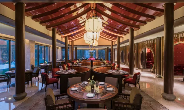 咖啡厅全日制餐厅为食客提供提供融合世界美味的早、中、晚自助餐;湖畔餐厅设计融入“盛唐文化”与“吉祥文化”红色设计主题风格将为食客提供特色的本地菜肴和北方融合菜。
