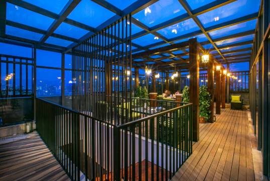 酒店拥有以中高端意式菜、法式菜、各式红酒、鸡尾酒为特色的“荟芸台露天花园西餐厅”,及以地道川黔菜、精品粤菜、湘菜、海鲜火锅和新派早午茶点为特色的中餐厅,中餐厅设有宴会厅2个、包房26个、可以同时接纳400余人用餐。