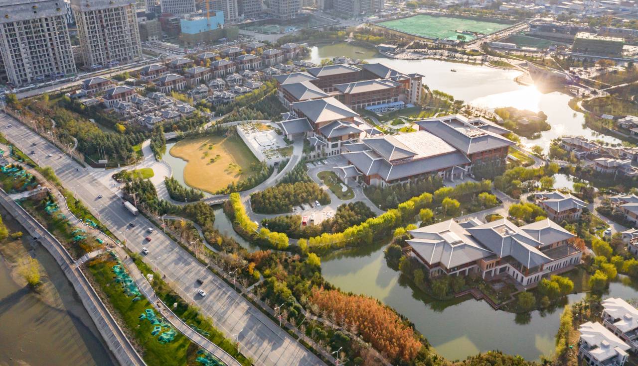 酒店位于西安浐灞生态区核心腹地,毗邻长安八水,背倚滋水公园,10万平方超大湖面辉映,7.6万平方后汉唐建筑群落,园隐于市。是西安一家拥有中式园林的商务会议型酒店。