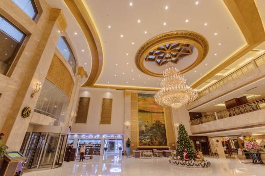 酒店大堂豪华大气,配套停车场也方便停车,晚上聚餐的餐饮部性价比很高,住宿房间宽敞明亮,落地窗景观设计新颖。前台服务效率高,满足需求也很有同理心,性价比高,值得回购!