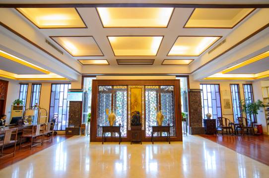 一进入酒店大堂 ,就觉得这间酒店非常大气,通往房间的走廊挂满画,金色雕花木条装饰墙面,可以想象以前这间酒店一定富丽堂皇的。最喜欢它的房间布局全是在走廊一侧,另一侧全是窗,所以走廊采光和通风很好,这样设计房间比较安静。酒店傍边是别墅区,四周种满大树,私密性好。早上有鸟鸣、晚上有蛙叫,环境非常清净。同时,距离瘦西湖近, 交通便利。房间大,淋浴花洒出水大,冲凉好舒服。服务好。