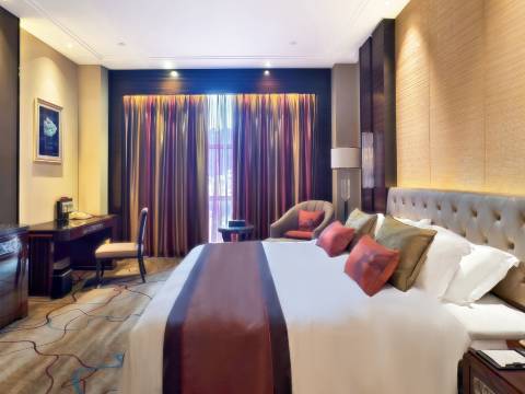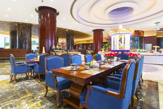 酒店由主楼、会议楼、翡翠楼等多栋相连建筑组成,建筑面积38000平,配套园林面积约10000平。拥有众多尊贵奢华(套)客房,配备能同时容纳2000人的无柱式宴会厅,7个多功能厅及会议室。配套有中餐厅、SPA水会、KTV等休闲娱乐设施,商务中心、珠宝店、儿童乐园以及超大停车场等设施一应俱全,竭诚为海内外宾朋提供全方位、高品质的服务。