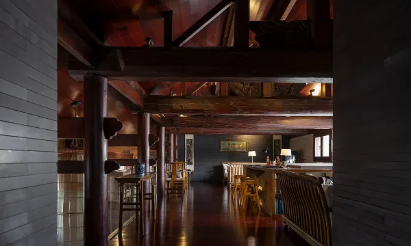 客栈大堂中设有壁炉,与大堂相邻的是优雅舒适的餐厅。楼上设有一个温馨小酒吧和一间图书室,宾客能尽情享受影碟、上网浏览。壁炉中火红的炉火,室内温馨惬意的气氛,使这里成为理想的会客、工作之处;也是客人在观光游览古城之后休闲放松的好地方。