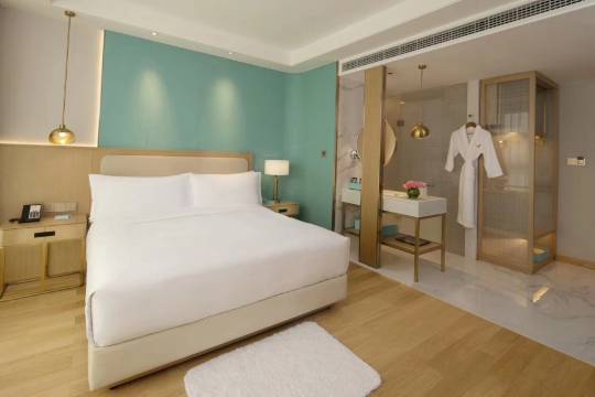 酒店拥有时尚、现代客房并配备金可儿床垫、科勒卫浴、50英寸飞利浦智能电视,部分客房配备Dyson吹风机、BOSE音响。酒店六楼还设立了健身区,是您忙碌一天以后调节身心的理想之所。