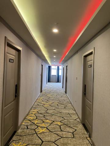酒店停车方便,出入方便,前台服务好,主动免费给我们升级房间,室内卫生干净整洁舒适,附近有小吃街种类丰富,还有中强光年,吃喝玩乐都有,很推荐。