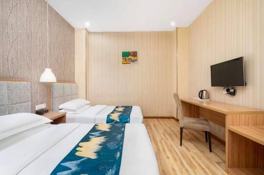 位置好,交通便利。房间很干净,特别是有一次性面巾,洗脸很方便。刷牙也是一次性杯子。这样用着真安心。房间有送的矿泉水。。。前台小姐姐说话很舒服。很热情。。最最重要的是他们的所有房间都能延迟退房到16点。超级爽,给店家大拇指