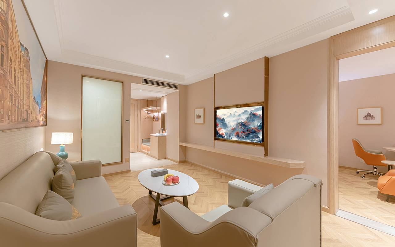 住了很多天 落地窗 看着外面心情特别好呢 干湿分离的卫生间 前台接待和保洁阿姨 都特别好 干净卫生 服务周到 希望在这里过一个愉快的新年