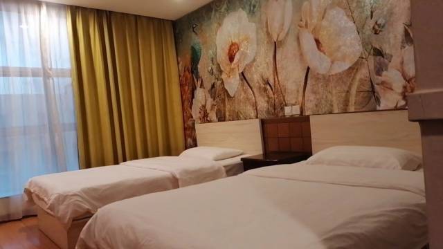他的家庭房还是不错的。挺壮大的,最大的优势可以去海鲜城,吃完海鲜喝了酒就睡觉,离海鲜城近。