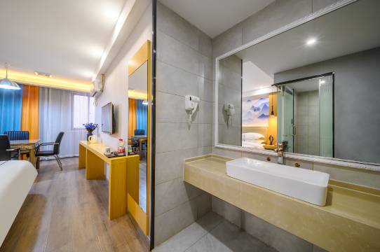 进门很宽敞给人很舒服的感觉!房间设施都齐全,都是独立的很方便,周边吃喝出行都很方便,第一次来这边不知道吃什么,前台小姐姐很热情,介绍了这里的吃喝,服务态度真的一级棒👍下次还会来住!