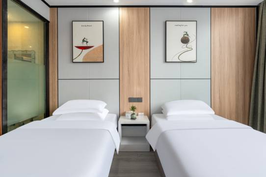 房间装修时尚、温馨舒适,交通便利,在这里真的太舒服,周边吃喝玩乐也是比较方便,服务卫生做的也很到位,下次出差还来