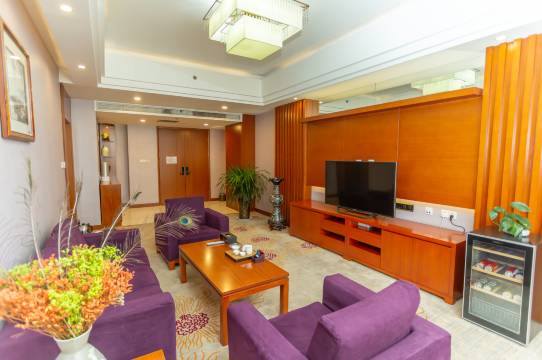门口停车场广场不小,停车很方便,定的房间是个套房,房间很大,住着很舒服,打电话给前台,留了个阳面的房间,房间朝着一个小区,很安静,需要注意的是门口是单向线,开车朋友注意点。
