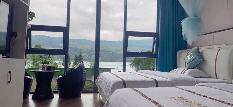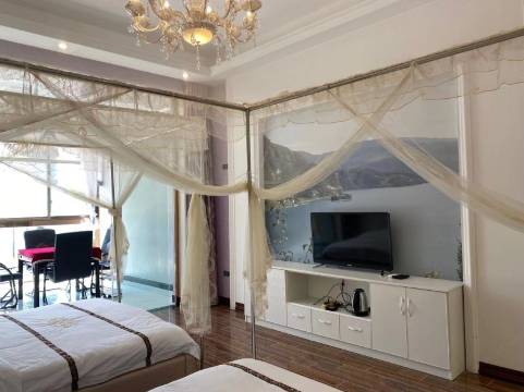 老板人很实诚,我们因为堵车等原因半夜1点才到,老板人很好,我们找不到路他也比较耐心。至于环境卫生等等,我觉得对得起这个价格吧,窗户外面就是湖,景色不错。