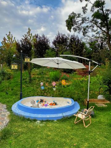 房间干净整洁 设施齐全 带的东西有点多 有点乱 就不给大家拍房间照片了 室外确实很惬意 景色布置的好 有水池 有儿童滑梯 沙池 蹦床 带孩子去 不去景区 光民宿都能玩上半天