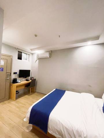 老板娘人很好,一个人建议订大床房会舒服很多,楼下就有超市,晚上街边会有夜宵摆摊,不远处有广场,位置好找,前台热情耐心,客房卫生干净,简约大方,角落卫生也干净,设施设备齐全
