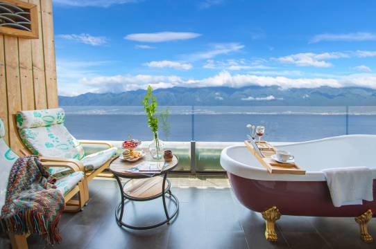 酒店位置很好,看日落观湖景一览无余。服务很好老板很热情,前台小哥帮拿行李上楼,早餐也很丰富还可以送到房间里吃,大厅有免费的水果小吃和红茶,承诺的拍照环节也是非常满意,值得推荐。