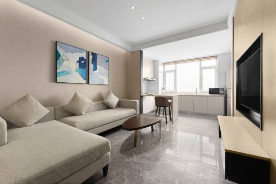 公寓300余间典雅舒适客房均配备免费Wifi及有线网络、舒适床品、知名品牌厨灶、滚筒洗衣机、高清电视、独立暖水器及风靡全球的澳洲有机护肤品牌APPELLES洗浴套装。在旅途之中也能感受到家的烟火气息。从您的房间望去,无遮挡美景尽收眼底。独特的园林式庭院景观,让您在繁华城市中享受宁静一隅。