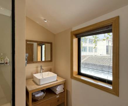 位置非常好,这几天苏州高温,幸好酒店到哪儿都很近,方便随时回来休息,房间装修干净温馨舒适,最喜欢床头百叶窗外的白墙灰瓦和随风轻舞的细竹,还有浴缸旁落地窗外的景色,晚上逛累了还可以泡澡解乏,很满意