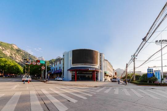 服务态度很好 地理位置优越楼下就有吃的特别多 距离爬华山路还要走几百米就到玉泉寺 距离去游客中心免费公交车也很近 这个酒店位置还是不错的在十字路口的东边