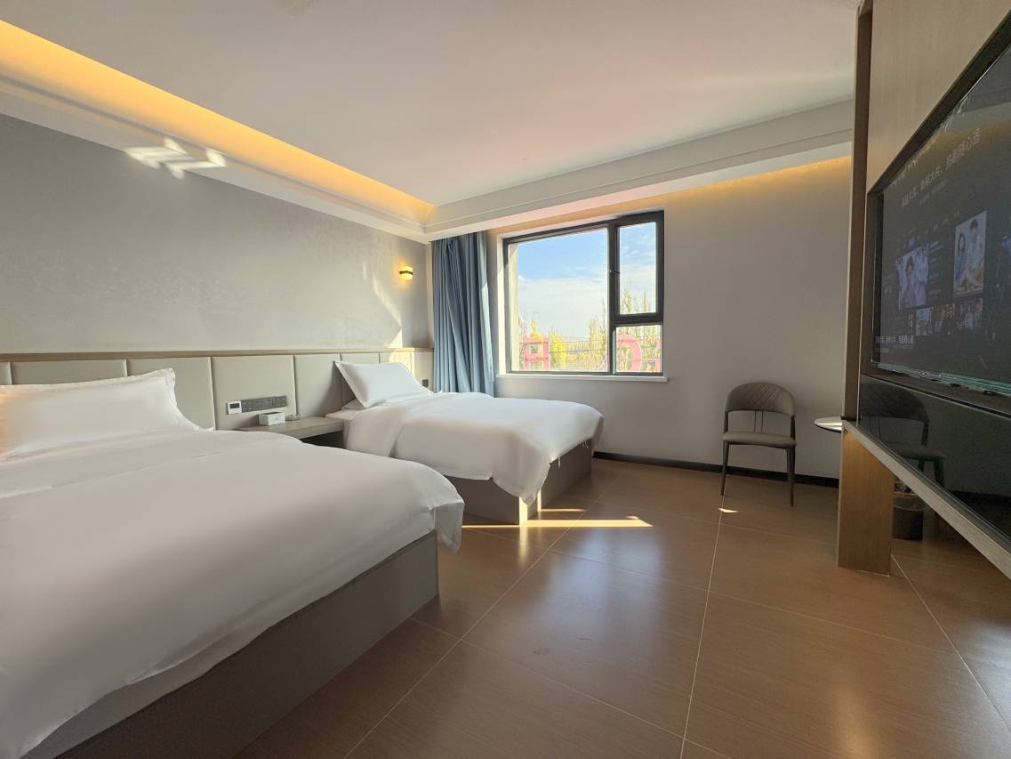 我真的震惊了,90块钱在新疆能住这样的房子!而且前台小姐姐人特别特别好我们住了两次,有一次特价房没有了,直接让我们扫码付款90元,又给了一件豪华双床,人太赞了,而且房间是地暖,冬天狠热哈哈哈哈